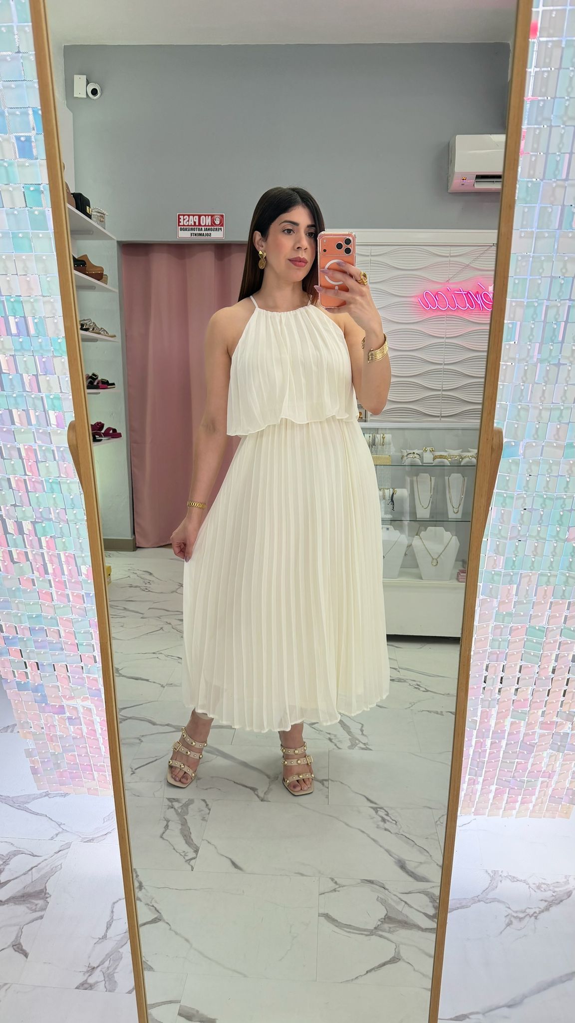 Medidas de Modelo: 34C busto, 30 cintura, 40 caderas.