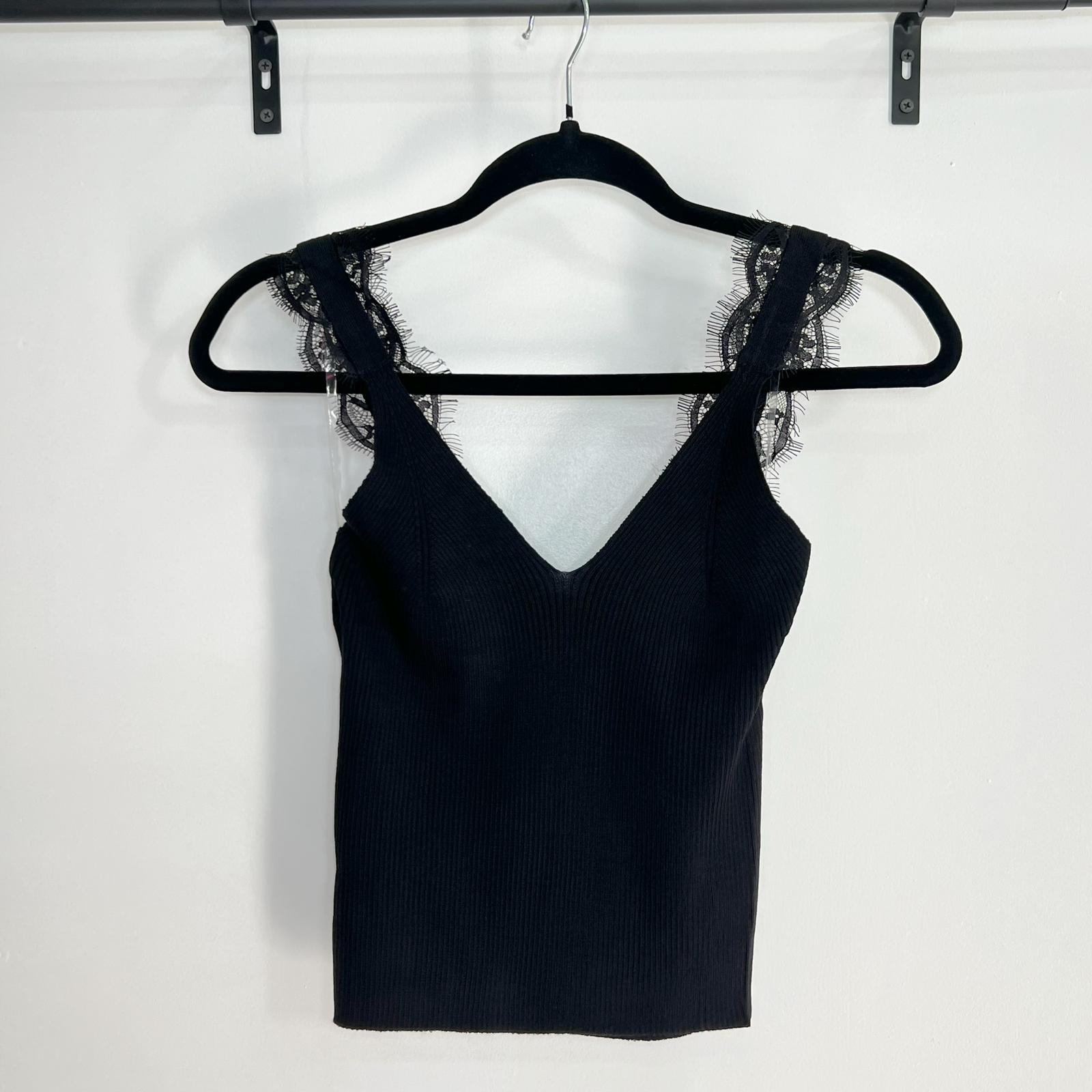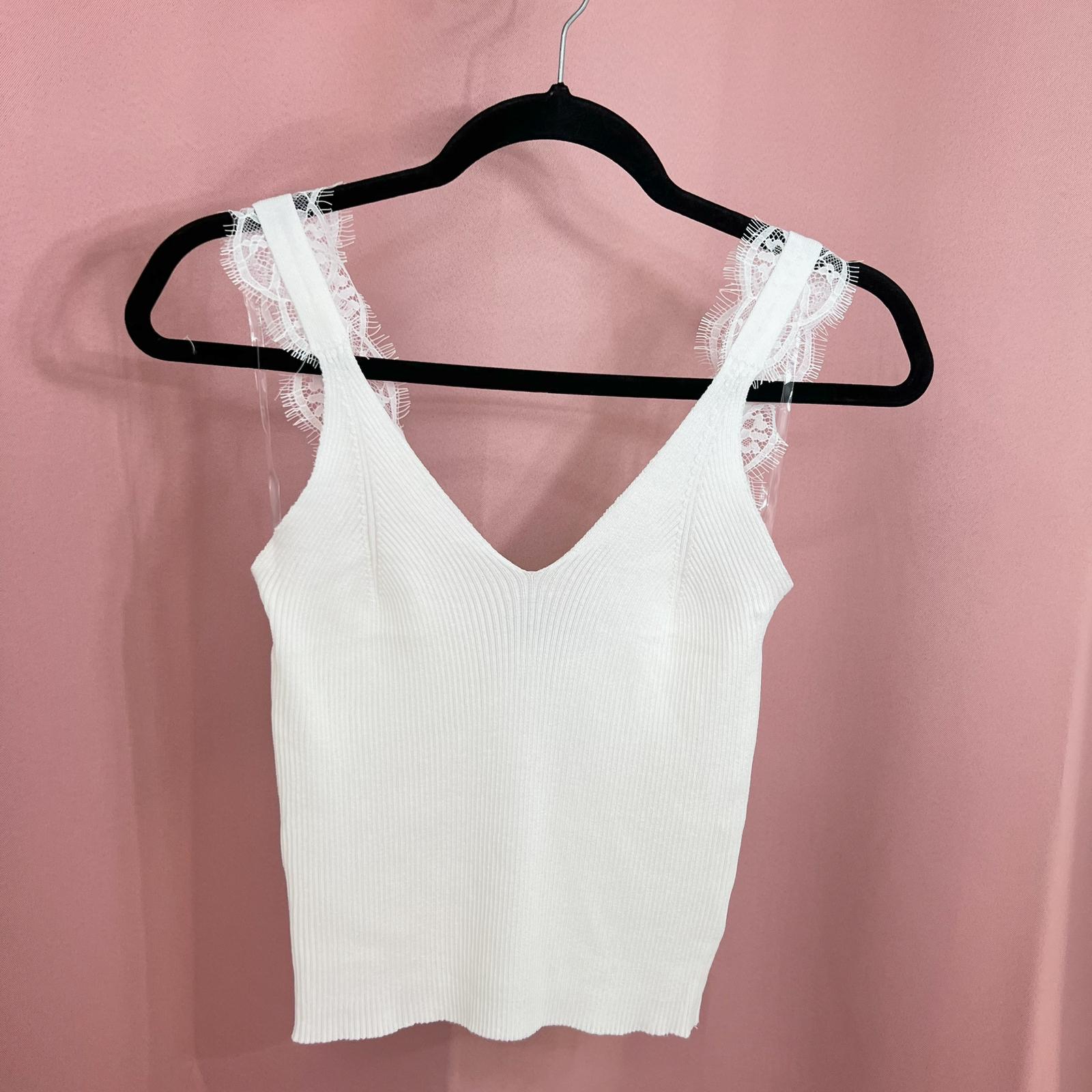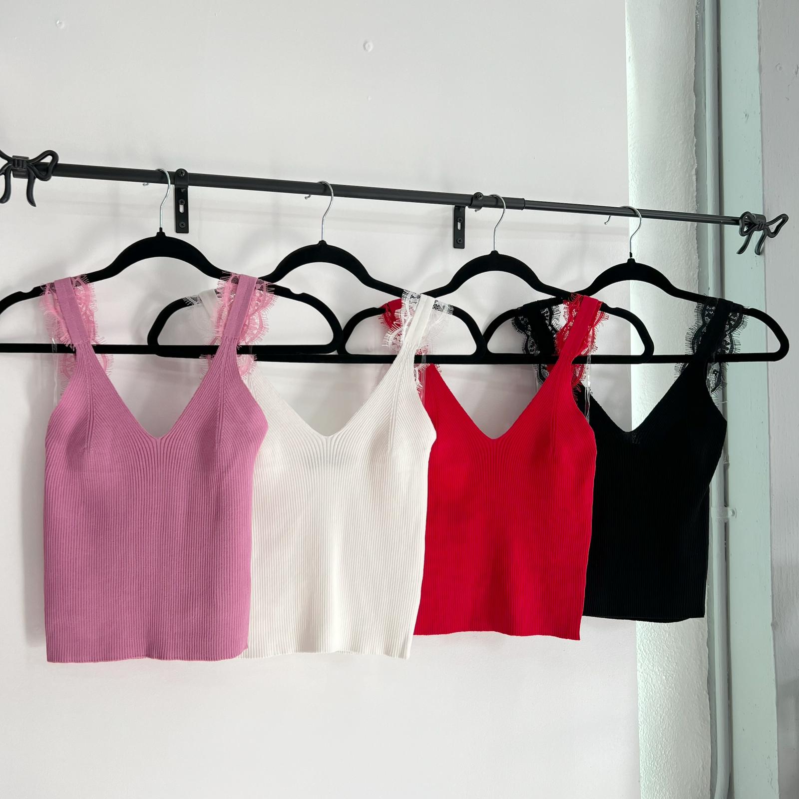Detalles de lace en las mangas, corte V en el pecho.